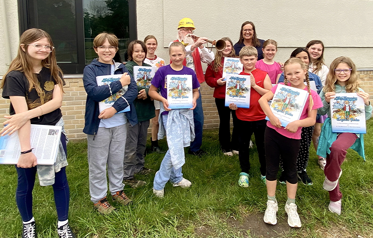 Cast members receive a copy of the "The Comedy of Crystal Lake"